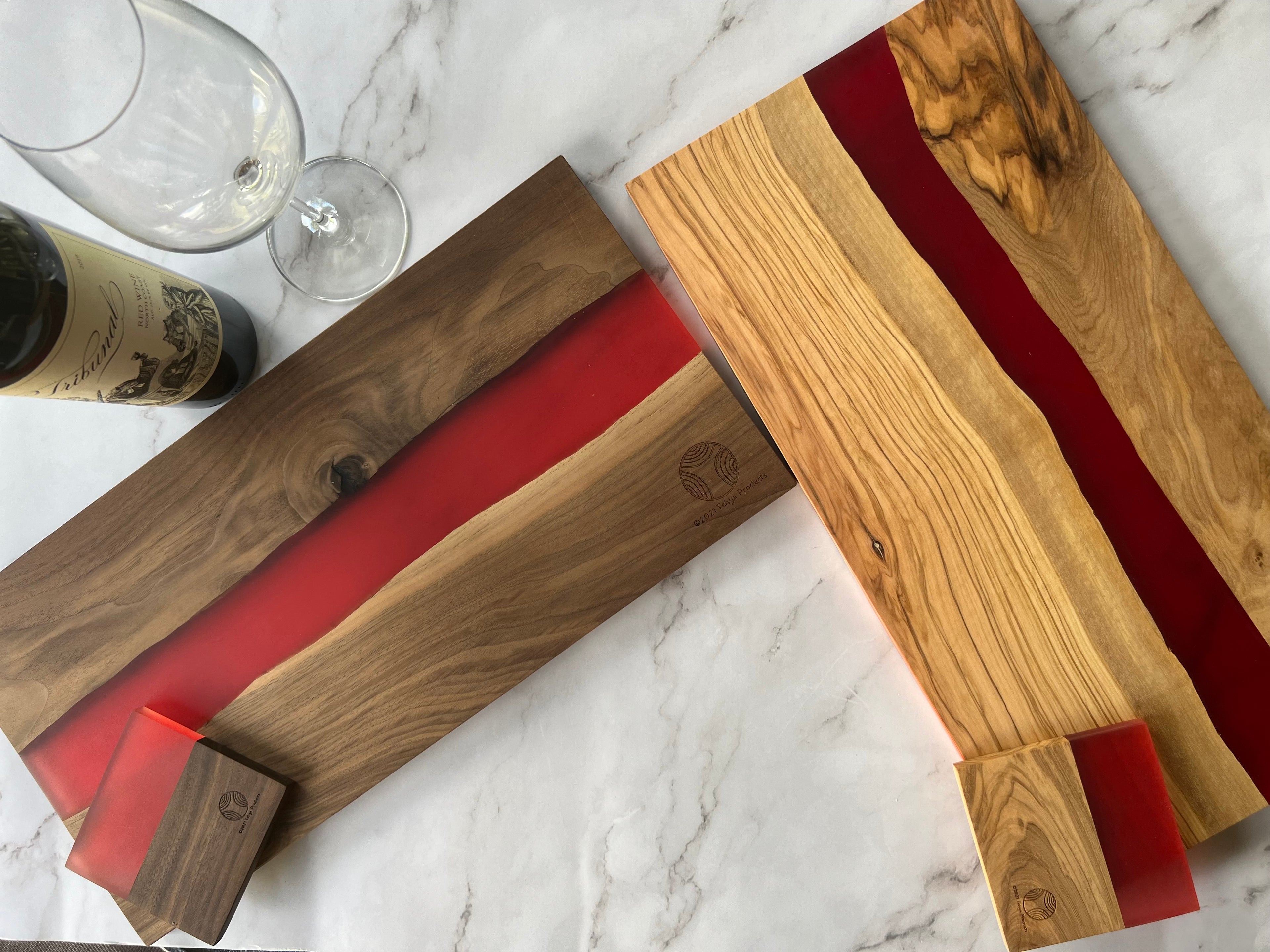 Olive Wood with Red-Resin Inlay Cutting & Serving Board
